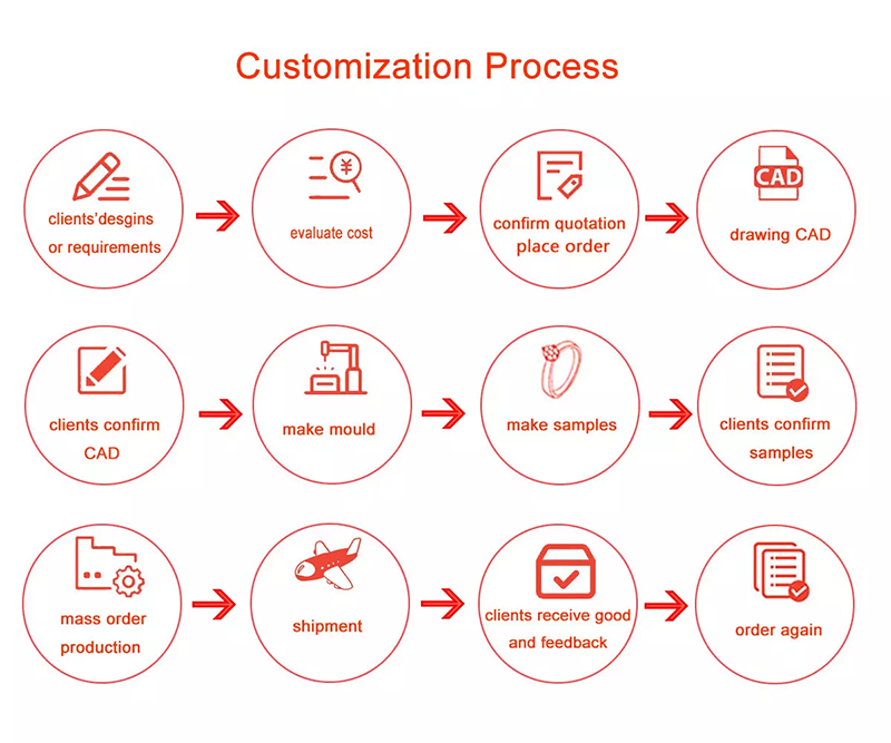 If you want to start a jewelry brand and hepe to custom the jewelry according to your thoughts or design. And you don't know how to start, here is the custom process for your reference. We will do our best to help you launching your jewelry brand and continuously expand it.